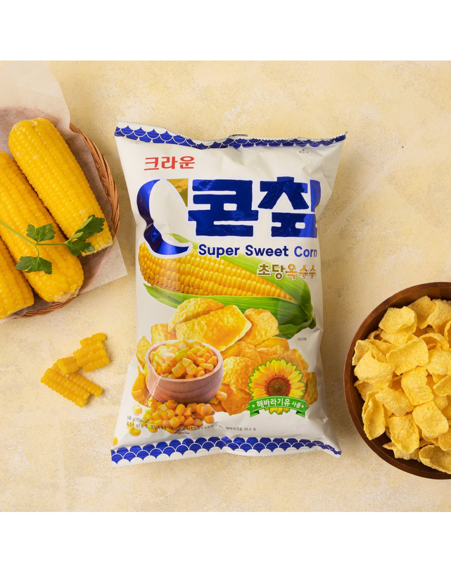 Crown Corn Chip Chodang Corn Flavor, where you can meet the popular snack corn chips you always ate in a different way. Chodang corn is characterized by its crunchy grains and sweeter taste. Taking advantage of that advantage, we added a sweet flavor to the existing savory and salty corn chips. I used sunflower oil to make it more crispy. Immerse yourself in the charm of Corn Chip Chodang Corn Flavor, a packaged snack full of umami flavor that disappears quickly.