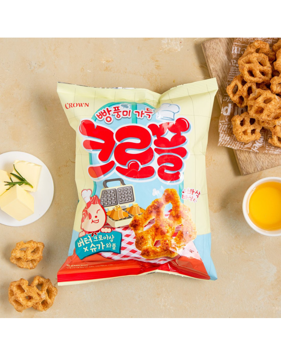 It is a crown crople snack with an attractive crispy texture and sweet caramel scent. It's a hexagon-shaped mini waffle-shaped snack that you keep coming back to. If you take a bite, you can feel the crispy texture of pastry and croissant at the same time. If you eat it with ice cream, coffee, or milk, you can experience a richer taste. Prepare a crople snack with an attractive crispy texture and caramel flavor.