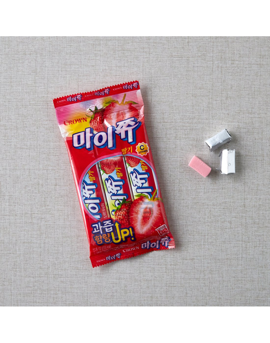 These are Crown My Chew strawberries that are good to carry around and share with loved ones. The unique soft taste and chewy texture, and the sweet and sour strawberry taste spread all over your mouth. In addition, artificial coloring is replaced with natural coloring, and the taste and color are expressed only with sour natural fruit juice, so you can enjoy it with confidence. Spend a sweet time with sweet and sour My Chow in the lazy afternoon.